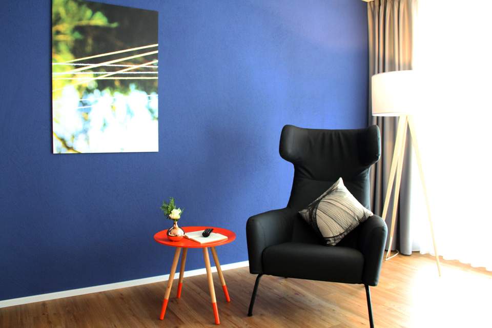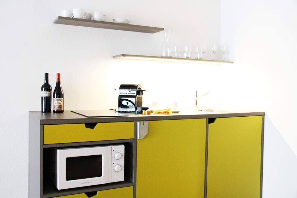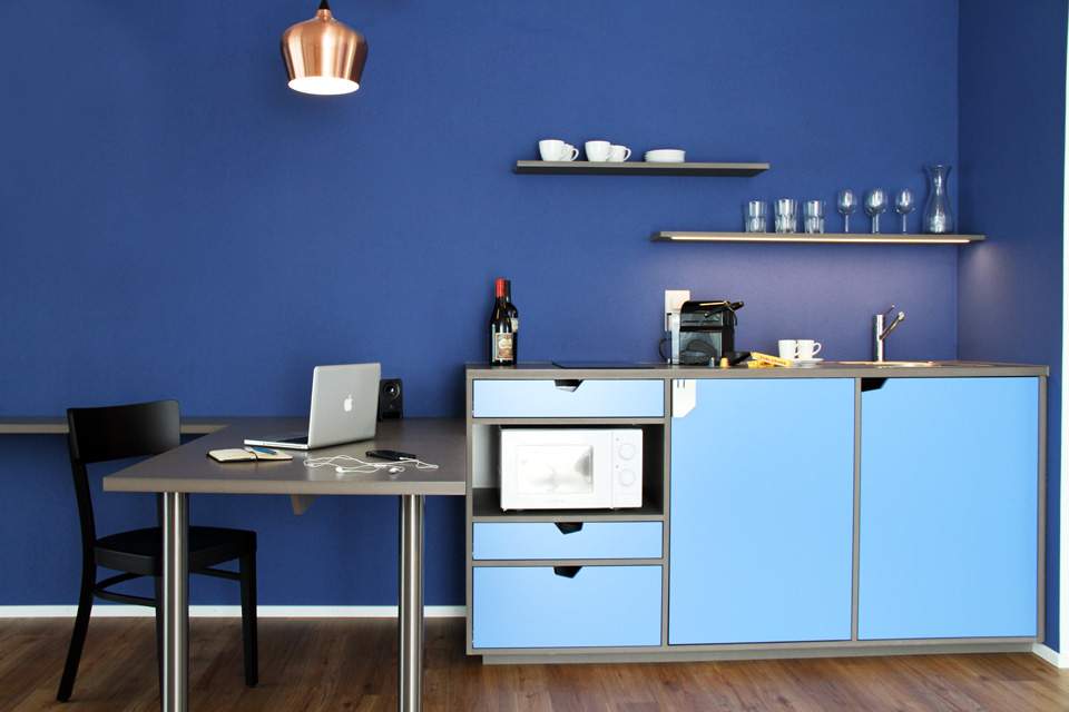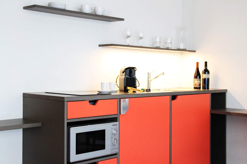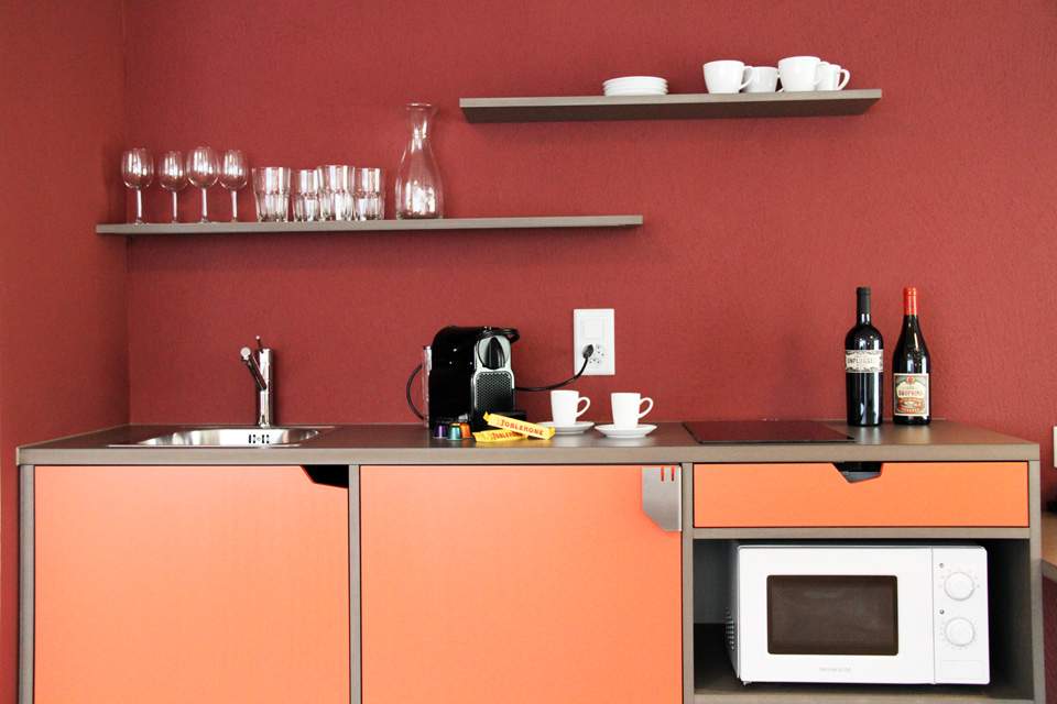 Bei uns finden Sie ein zeitgemässes Zuhause mit all den Annehmlichkeiten, die Sie von daheim kennen und in einem klassischen Hotelzimmer vermissen: wohnliche Gestaltung, modernes Bad, voll ausgestattete Kitchenette.